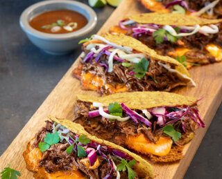 Birria Tacos with Cracker Barrel Cheese Skirt