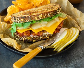 Cracker Barrel Cheddar, Bacon & Poached Pear Sandwich