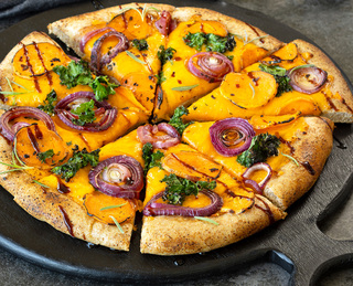 Cracker Barrel Cheddar Pizza with Sweet Potato & Kale